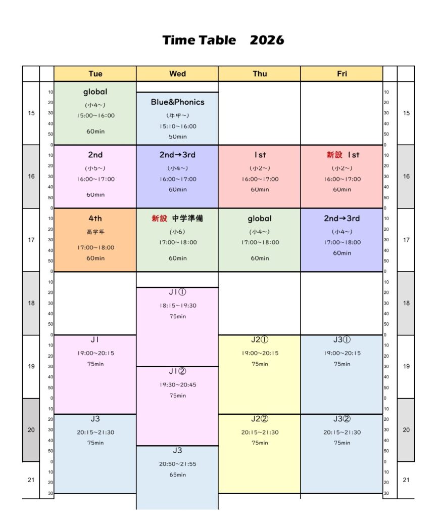 2026年度 時間割