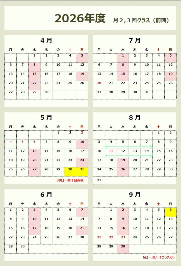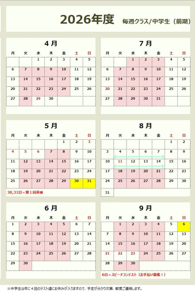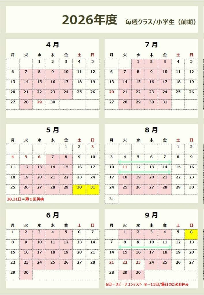 学期ごとの計算は、大変ご面倒だとは思いますが、子ども達のやる気UPの為にも、ご協力よろしくお願いいたします。
